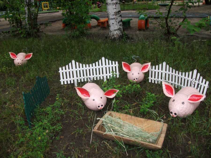 Из любого материала можно смастерить любимое животное или другое украшение для дачного участка. Когда облик предмета готов, его нужно лишь раскрасить и добавить мелкие элементы.