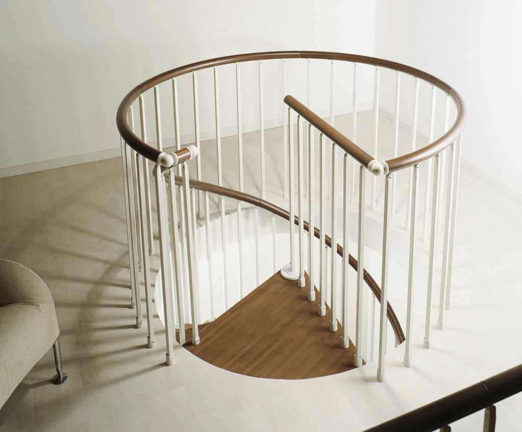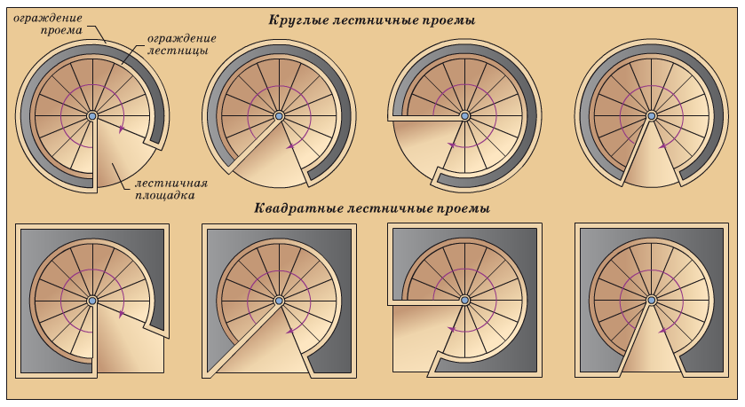 Главное, что при этом должно соблюдаться основное условие: размер проема должен быть больше, чем диаметр винтовой лестницы на 10 см с каждой стороны. Это необходимо для того, чтобы не поранить руки о стены при использовании перил на последних ступенях .
