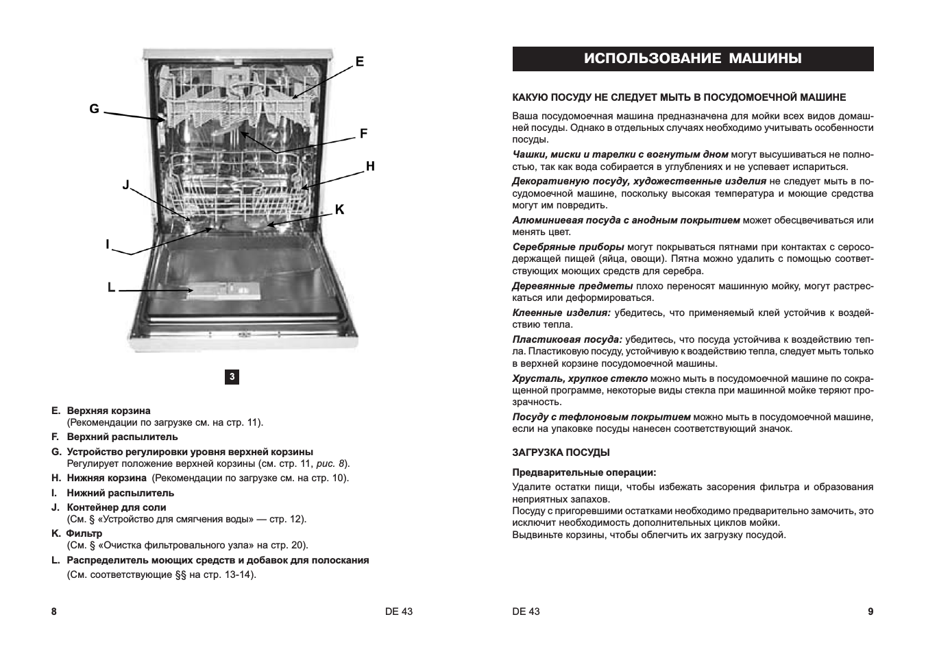 - металлические сковородки, кастрюли и т. п., потому что ржавчина, образовавшаяся в процессе эксплуатации, может представлять реальную опасность для других предметов при их одновременном мытье;