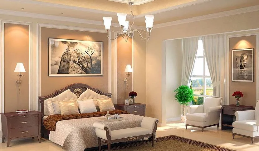 Прежде чем приступать к отделочным работам, нужно продумать освещение спальни. Источников должно быть как минимум два – потолочная люстра и прикроватные светильники