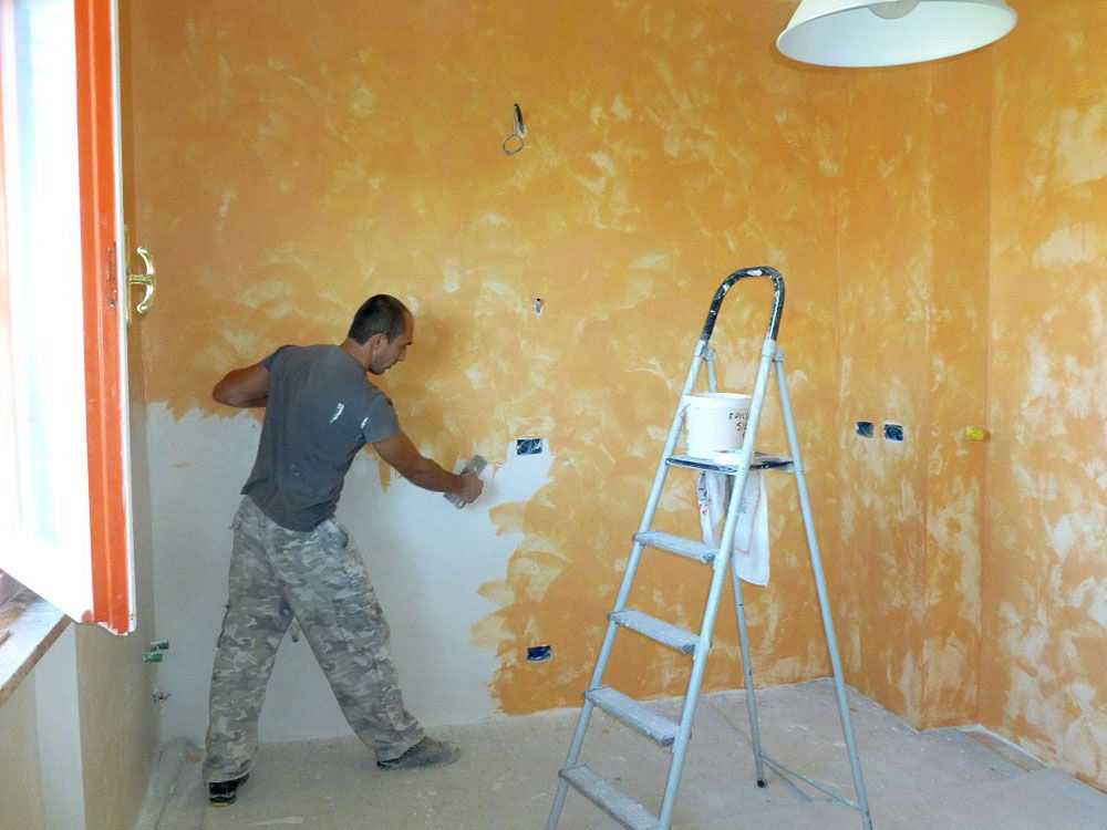 Для того, чтобы готовая поверхность получилась точно такой, как задумано, целесообразно сделать пробный выкрас. Для этого на предварительно прогрунтованном и просушенном куске фанеры размером пол метра на полметра выполняют нанесение штукатурки таким же слоем и с применением таких же приемов, которые предполагается использовать на стене. После того, как пробник высохнет, его красят в задуманный тон. Затем проверяют прочность сцепления штукатурки с фанерой: постукивают по заднику выкраса рукояткой шпателя. Если ничего не отвалилось, а фактура и цвет пробника устраивают мастера, можно приступать к основным работам. Однако бывает так, что для достижения нужного декоративного эффекта приходится изготовить два-три варианта пробника, пока будет достигнут требуемый результат.