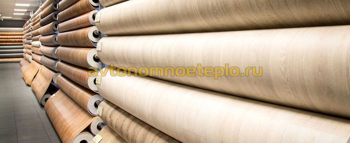 Виниловый — в состав кроме ПВХ входят добавки, которые придают прочность и жёсткость. Это один из популярных отделочных материалов, так как имеет не высокую цену. Предпочтительней для тёплых полов выбирать изделие на основе из ткани или вообще не имеющее основание. А вот наличие теплоизолирующего слоя не рекомендовано, так как оно частично будет задерживать тепло, тем самым понижать эффективность полового отопления.