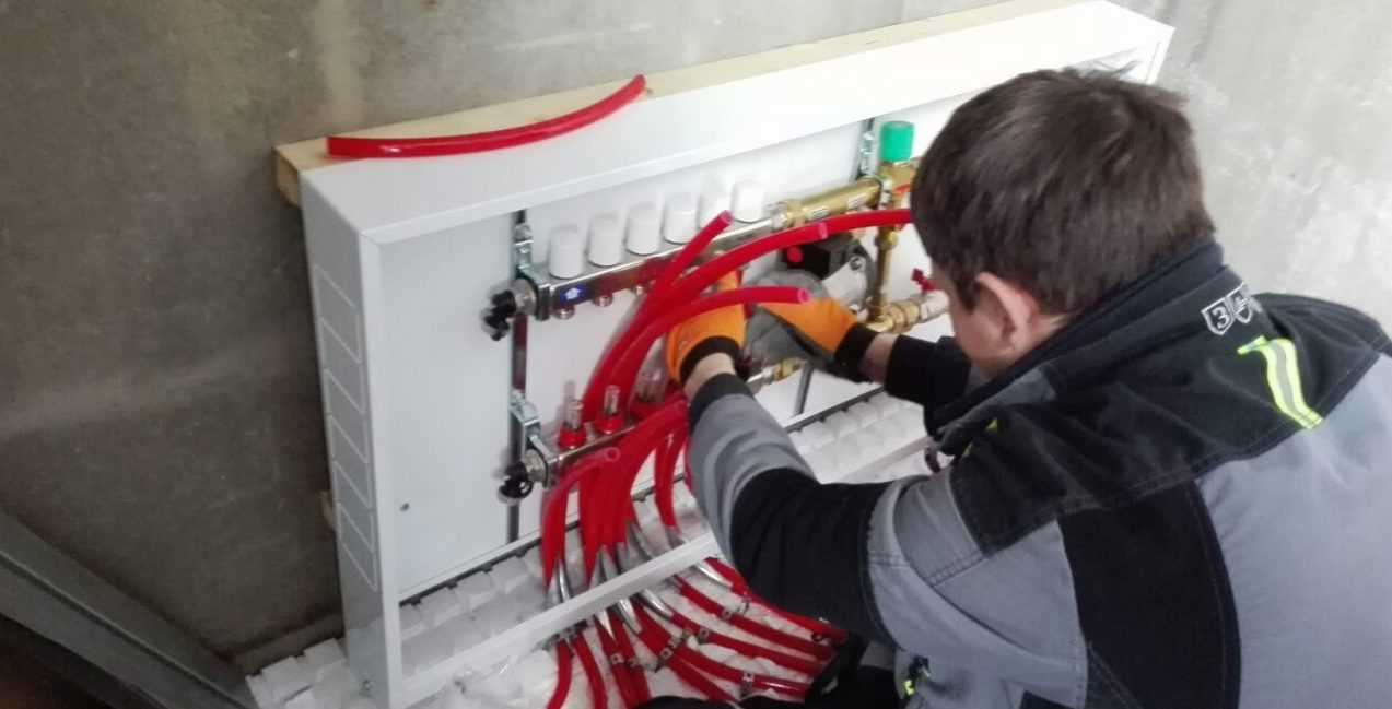 После укладки теплораспределительных пластин необходимо собрать коллектора, подключить к ним смесительные узлы и установить их на место постоянной дислокации.
