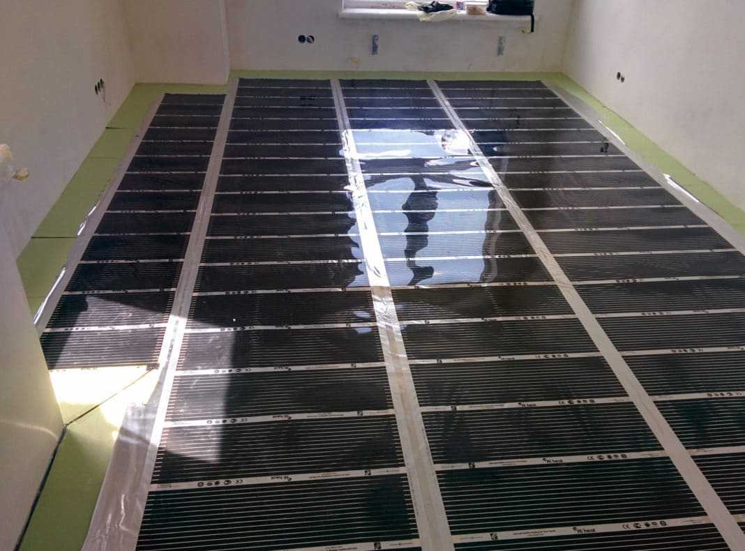 - Монтаж действительно не вызовет затруднений даже у домохозяйки. Но это утверждение касается только процесса раскроя и укладки пленки. Основная сложность заключается в подготовке основания пола и подключении данного устройства к электросети. Если следовать всем рекомендациям производителей, то данный процесс (с участием профессионалов) занял на комнату в 18 квадратов – 6 часов.