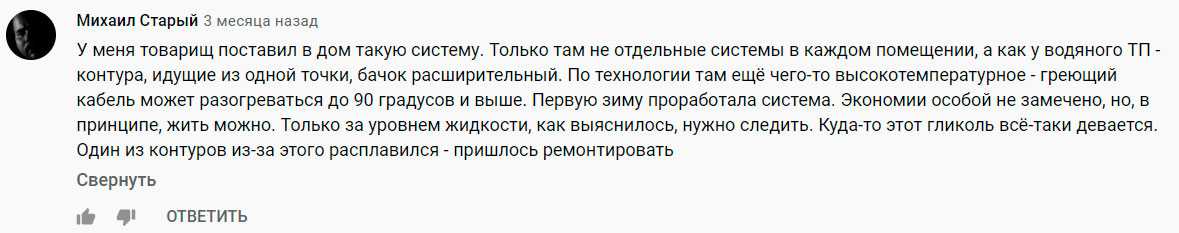 Вот и получается, что данная система — это по сути обычный (но более дорогой) электропол, с гипотетической возможностью полной замены кабеля без вскрытия стяжки. Остальная его «суперэффективность», мягко говоря сильно преувеличена.